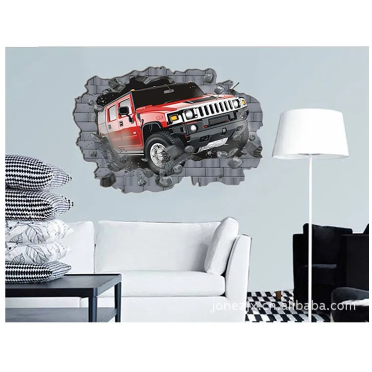 أرغب في شراءمعلومات اضافية 3d سيارة ملصقات الحائط للمنازل والمكاتب الاصطدام جدار الإبداعية التقليد أريكة ديكور للإزالة خلفيات