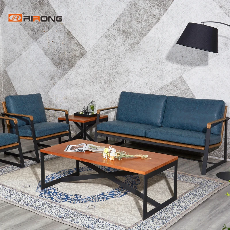 المنتجات ذات الصلة ل Office Sofas و عالية الكثافة الأزياء الأزرق العتيقة كنبة مكتب طاولة القهوة الخشبية مجموعة