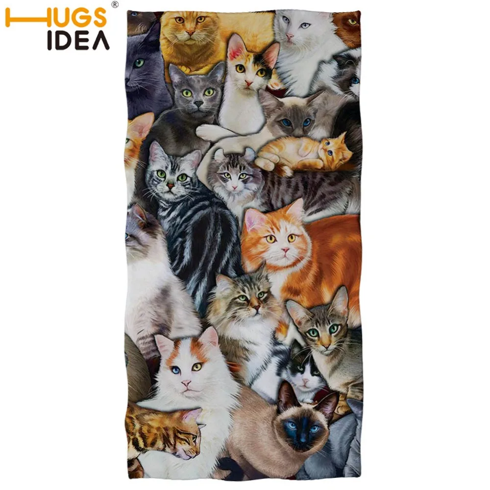 صور ل HUGSIDEA لينة منشفة شاطىء قطنية لطيف الطباعة 3d القط السباحة منشفة استحمام اليوغا كنبة مكتب بطانية 75X150 فوط استحمام ماصة