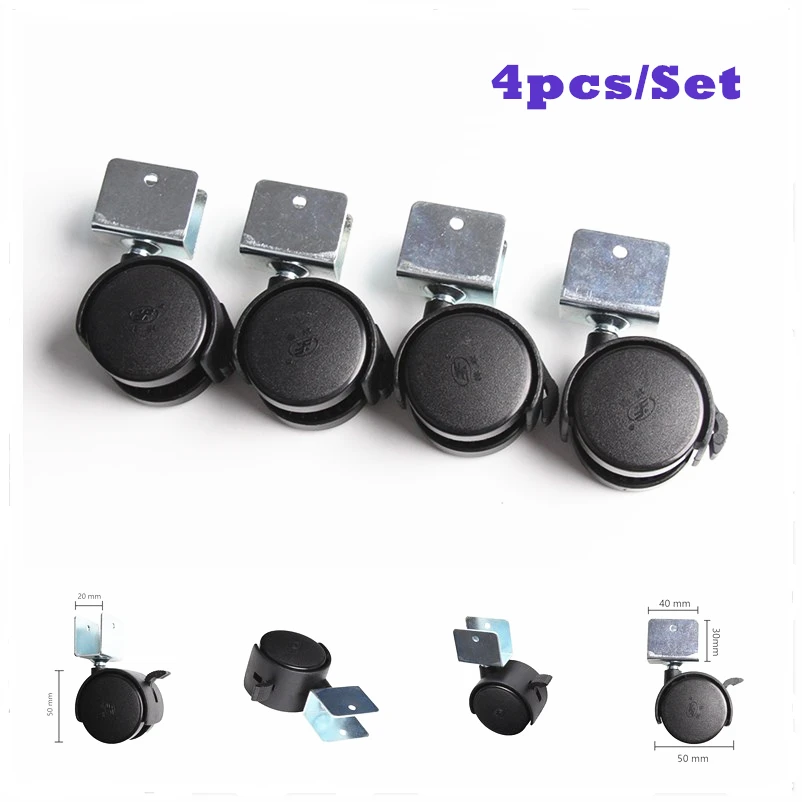 معرض من 4 قطعة/المجموعة أسود 50 ملليمتر استبدال قطب الأثاث عجلات كرسي مكتب الطفل سرير أريكة الفرامل البلاستيك المتداول بكرات عجلات العجلات