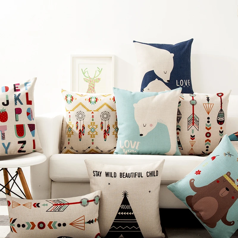 صور من الشمال هندسية كيس وسادة الطفل الكرتون الدب وسادة غطاء وسادة المنزل الزخرفية قطني الوسائد الكتان المخدة كنبة مكتب