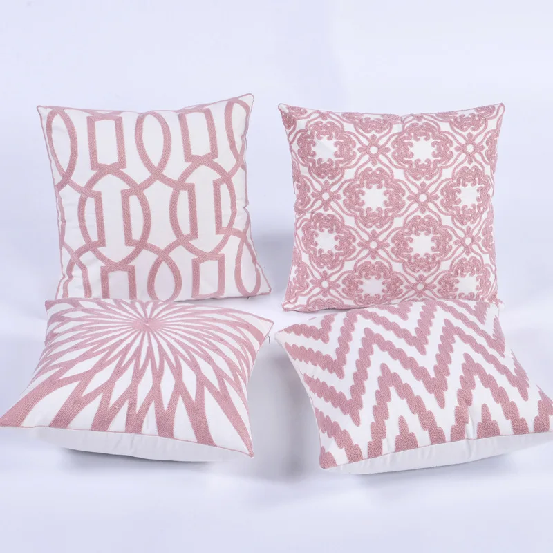 معرض ل قطني وسادة وسادة حالة غطاء وسادة رمية مزخرفة الوردي نمط هندسي غطاء الوسادة كرسي مكتب أريكة نوم الفتاة