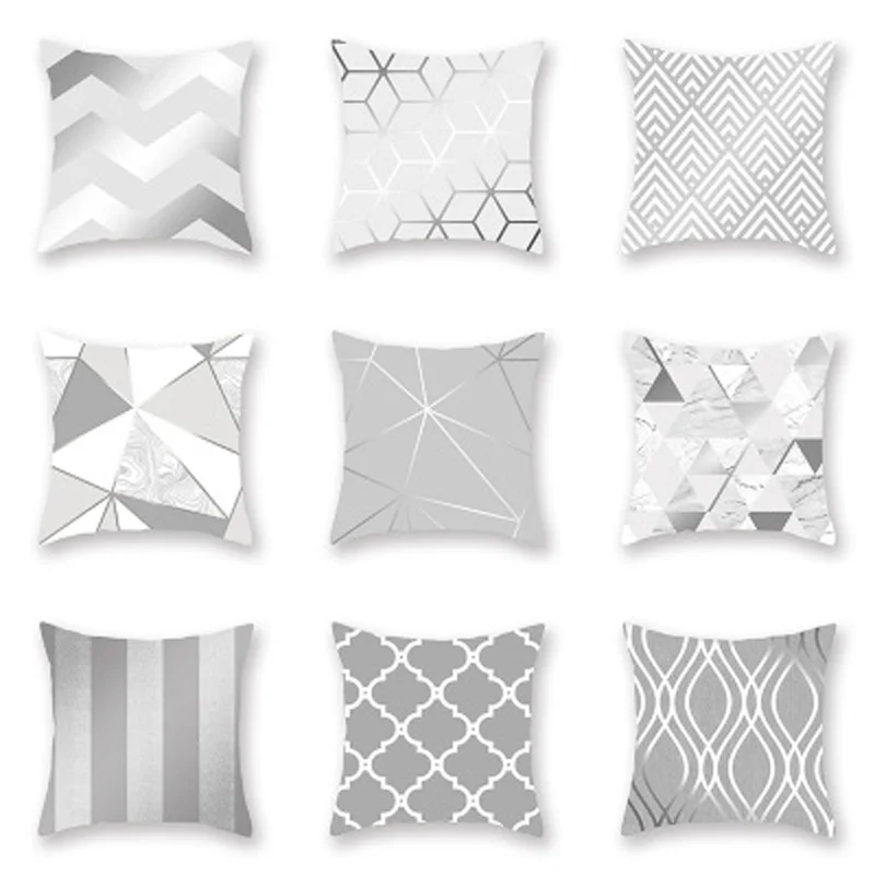 معرض من الفضة رمادي هندسية الخوخ الجلد المخدة سيارة كنبة مكتب السرير غطاء الوسادة مكتب مقعد المنزل decoration45 * 45 سنتيمتر