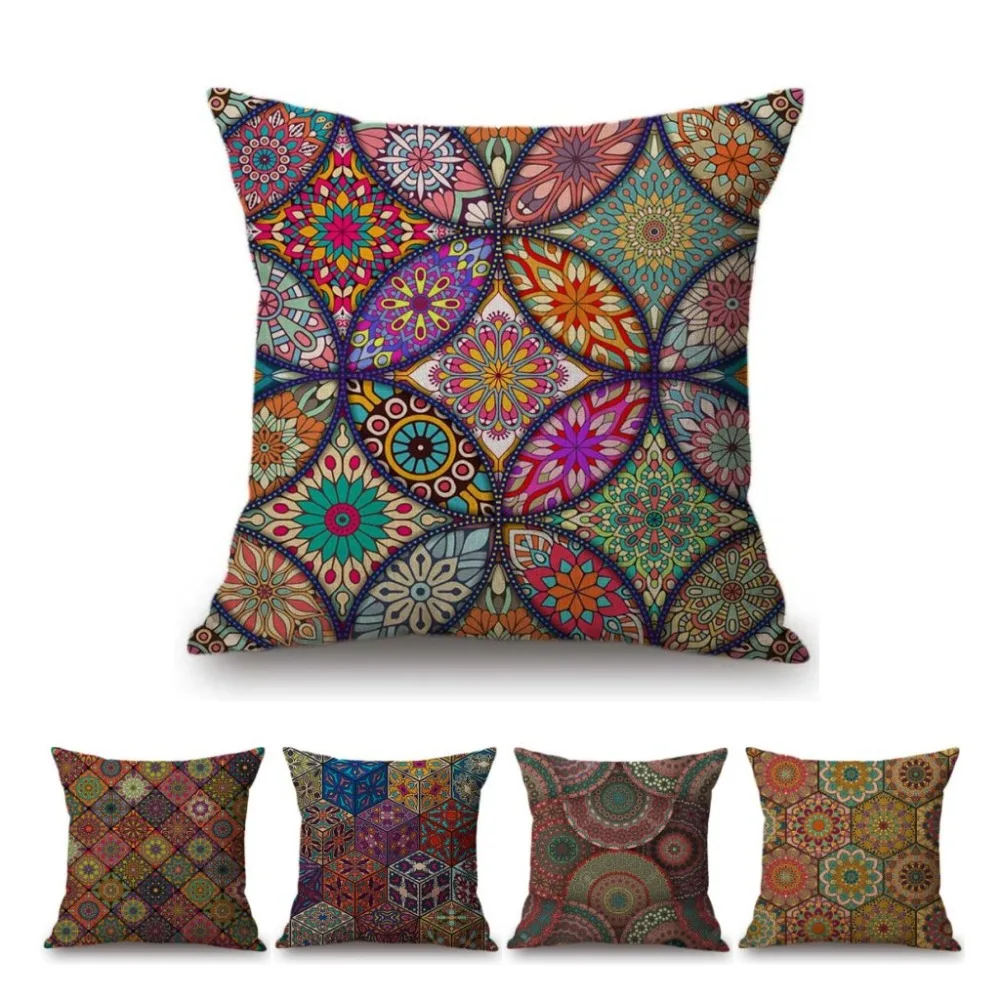 شراءمعلومات اضافية جديد الموضة ماندالا تصميم مكتب الرئاسة وسادة غطاء ملون لانهائي الهندسية الزهور القطن الكتان ديكور المنزل أريكة وسادة